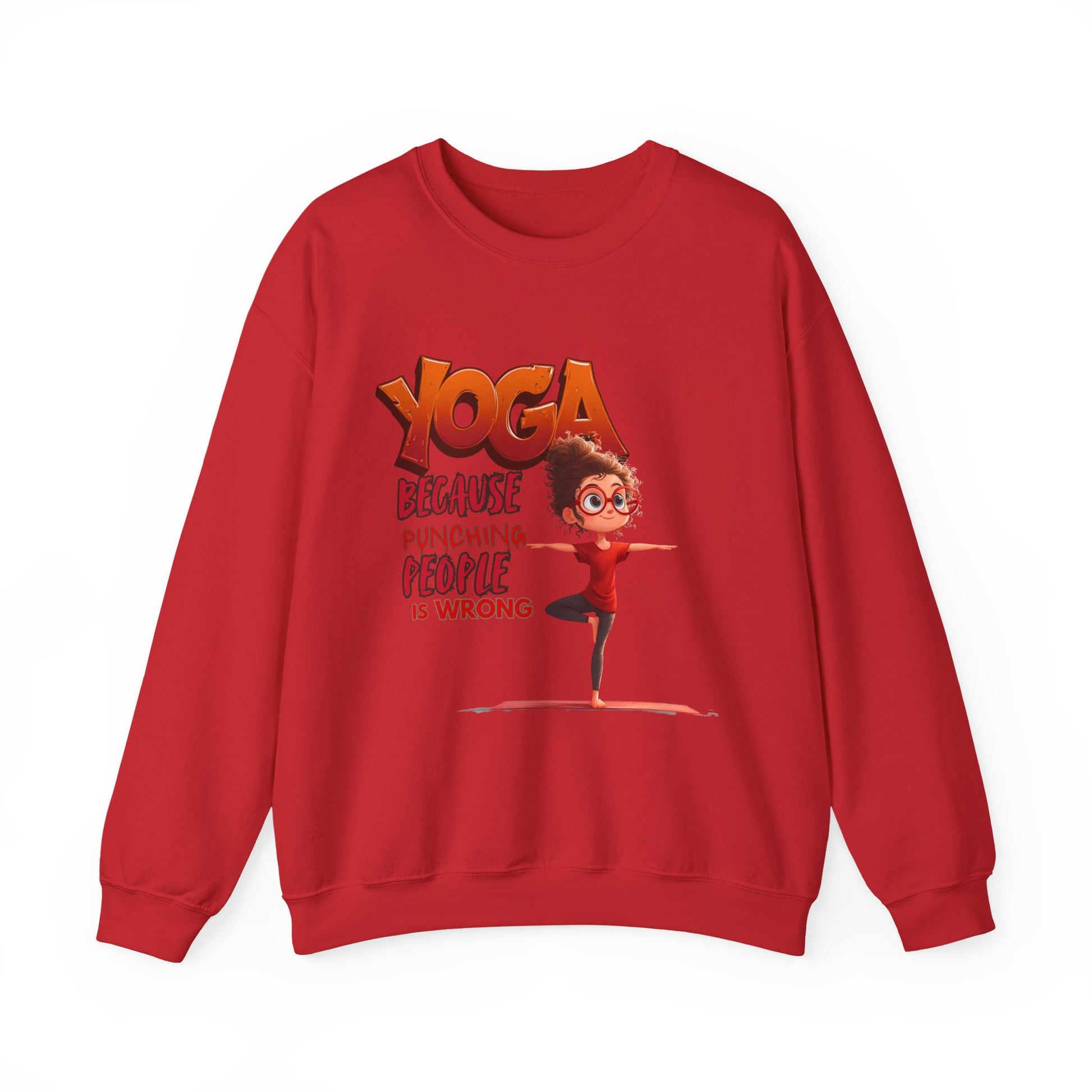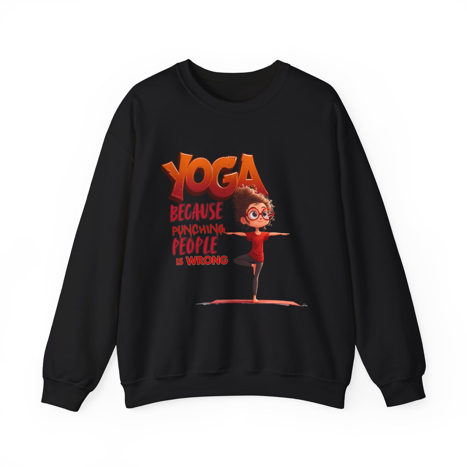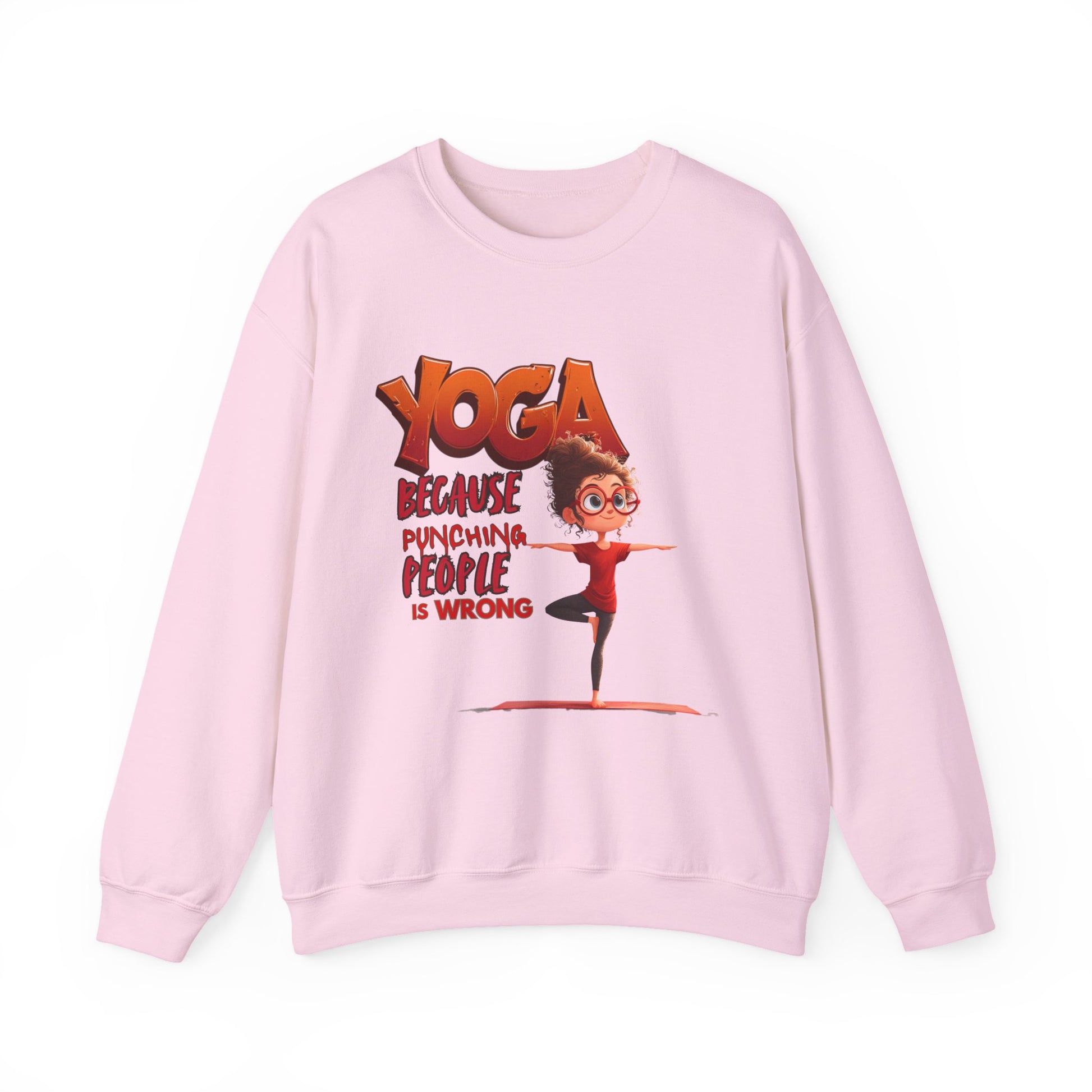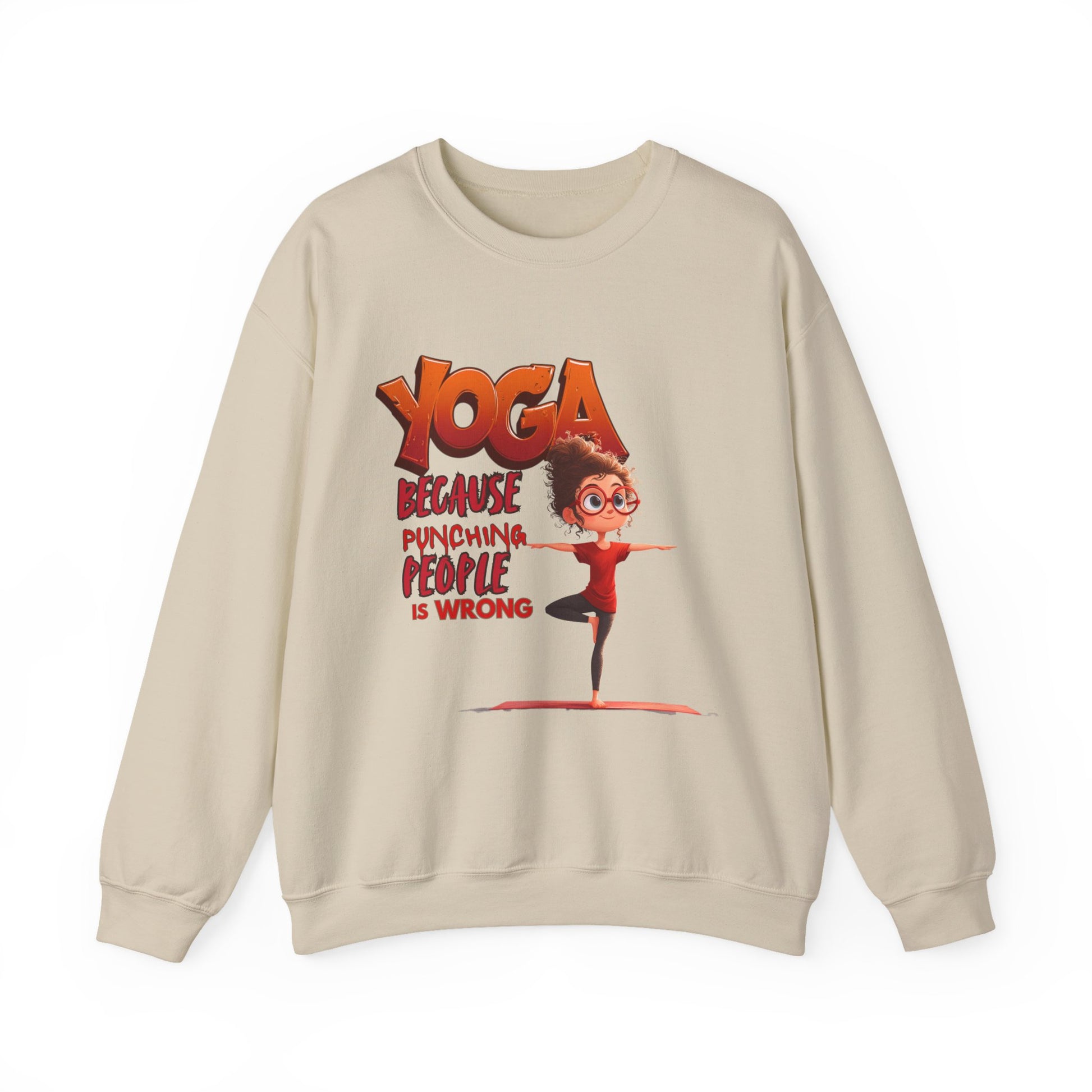 Funny Yoga Sweatshirt – “Yoga Because Punching People is Wrong” – Gift for Yoga Lovers