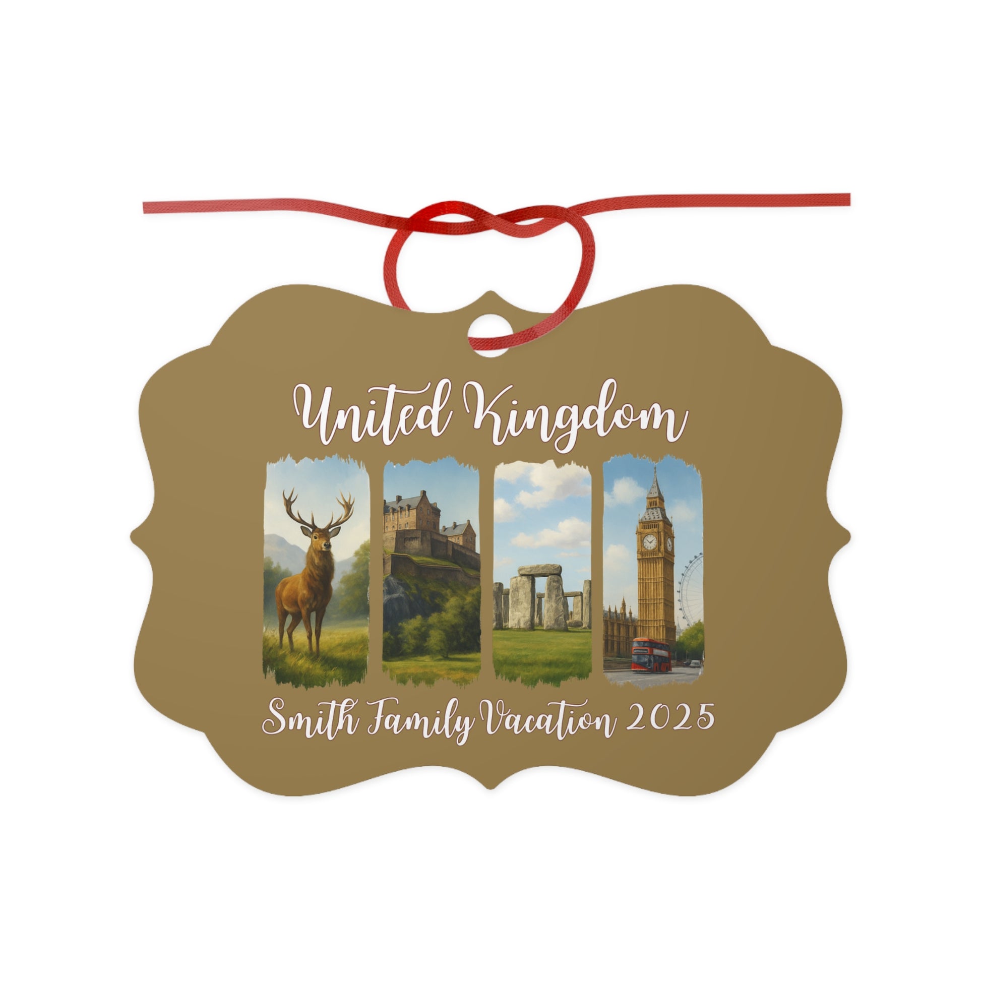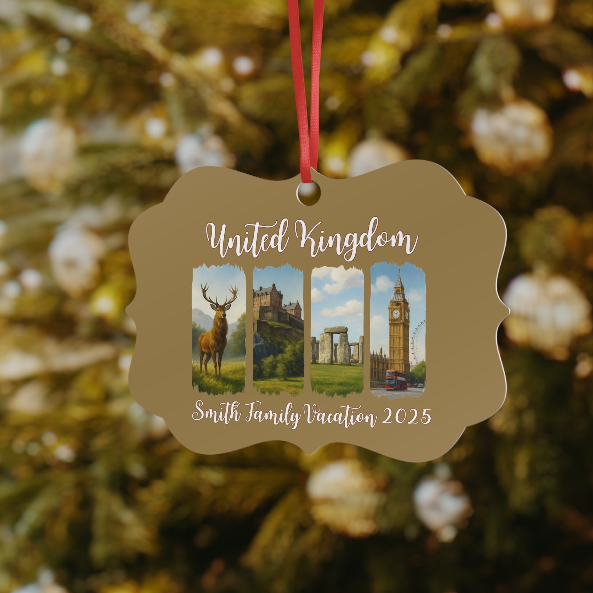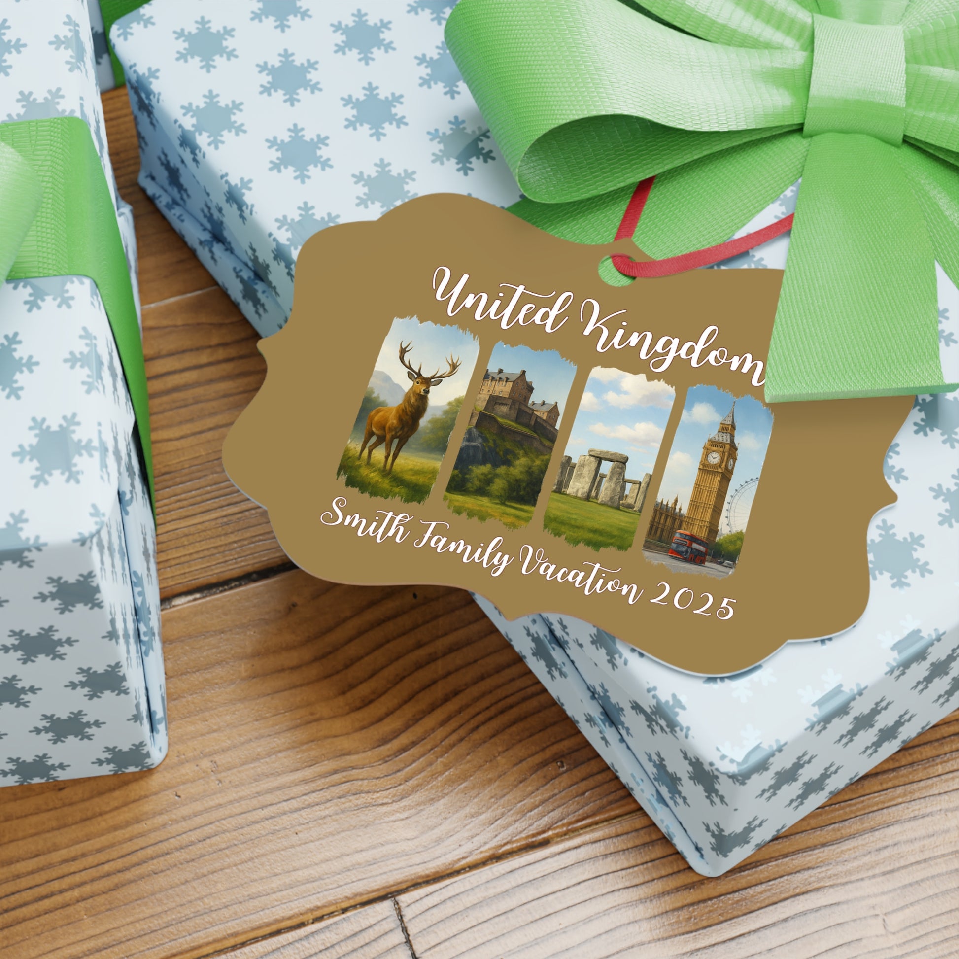 Personalized Aluminum Ornament - Family Vacation Keepsake, Travel Memory Decor, Holiday Tree Ornament, United Kingdom 2025