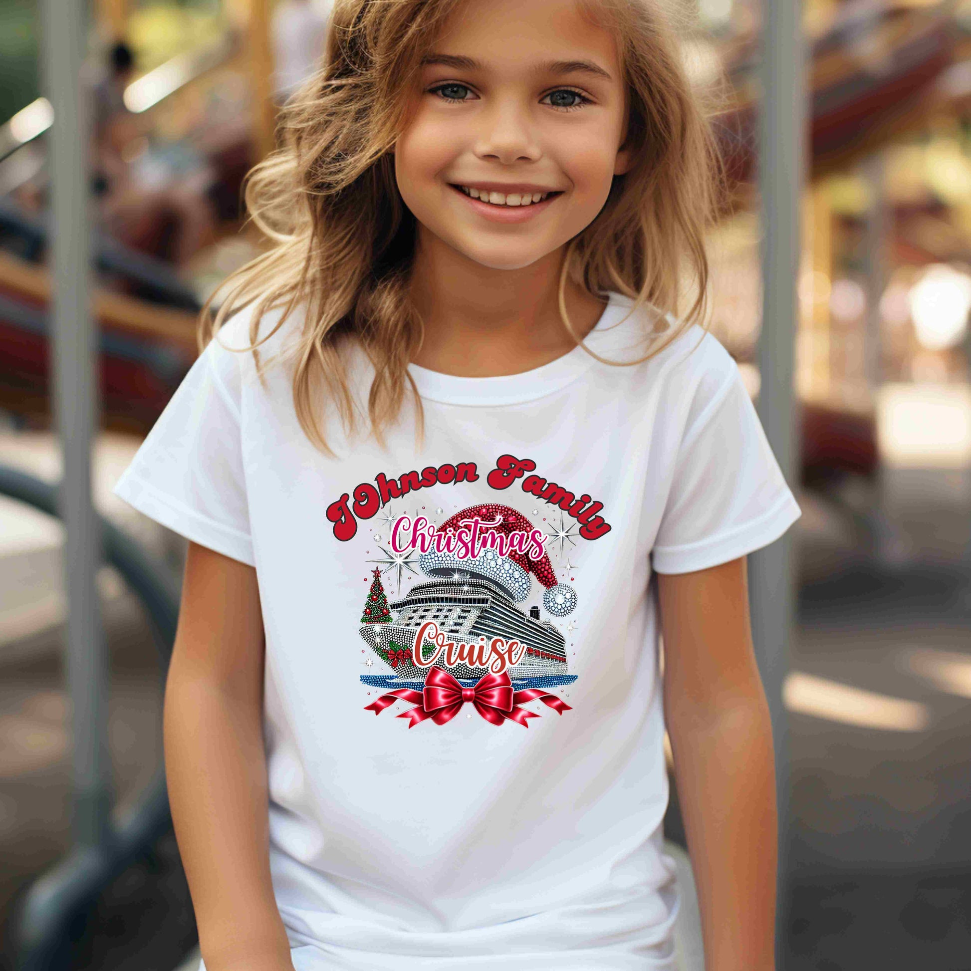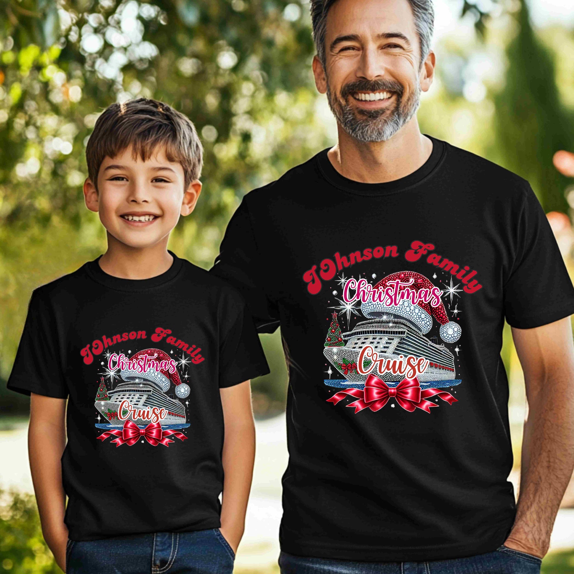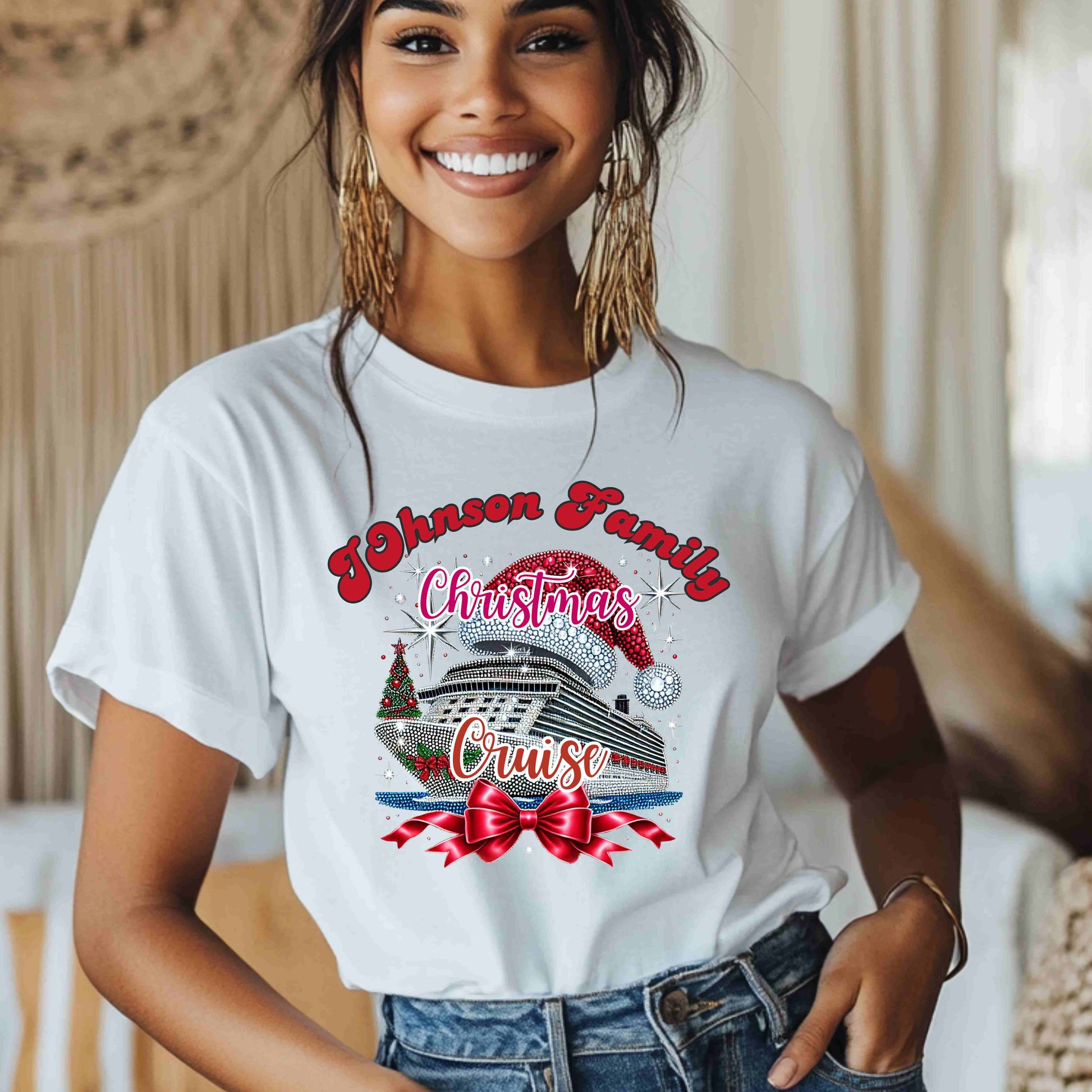 Set sail for festive fun with our Personalized Family Christmas Cruise T-Shirt – the perfect keepsake for your merry getaway! Featuring a cheerful cruise ship decked out in twinkling lights, ornaments, and a sparkling Santa hat, this design brings all the jolly vibes of a holiday at sea.