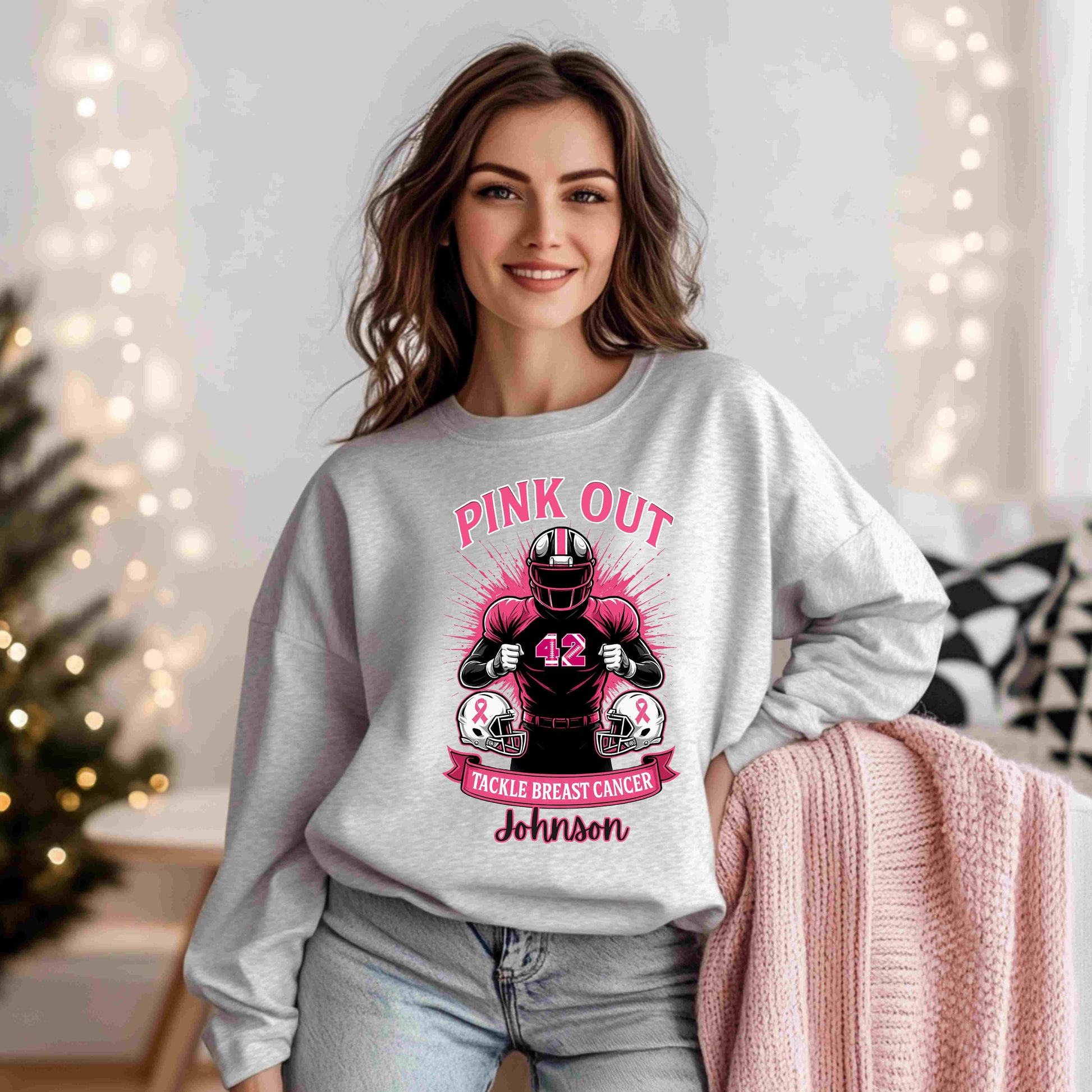 Personalized Pink Out Football Sweatshirt | Custom Breast Cancer Awareness Pullover