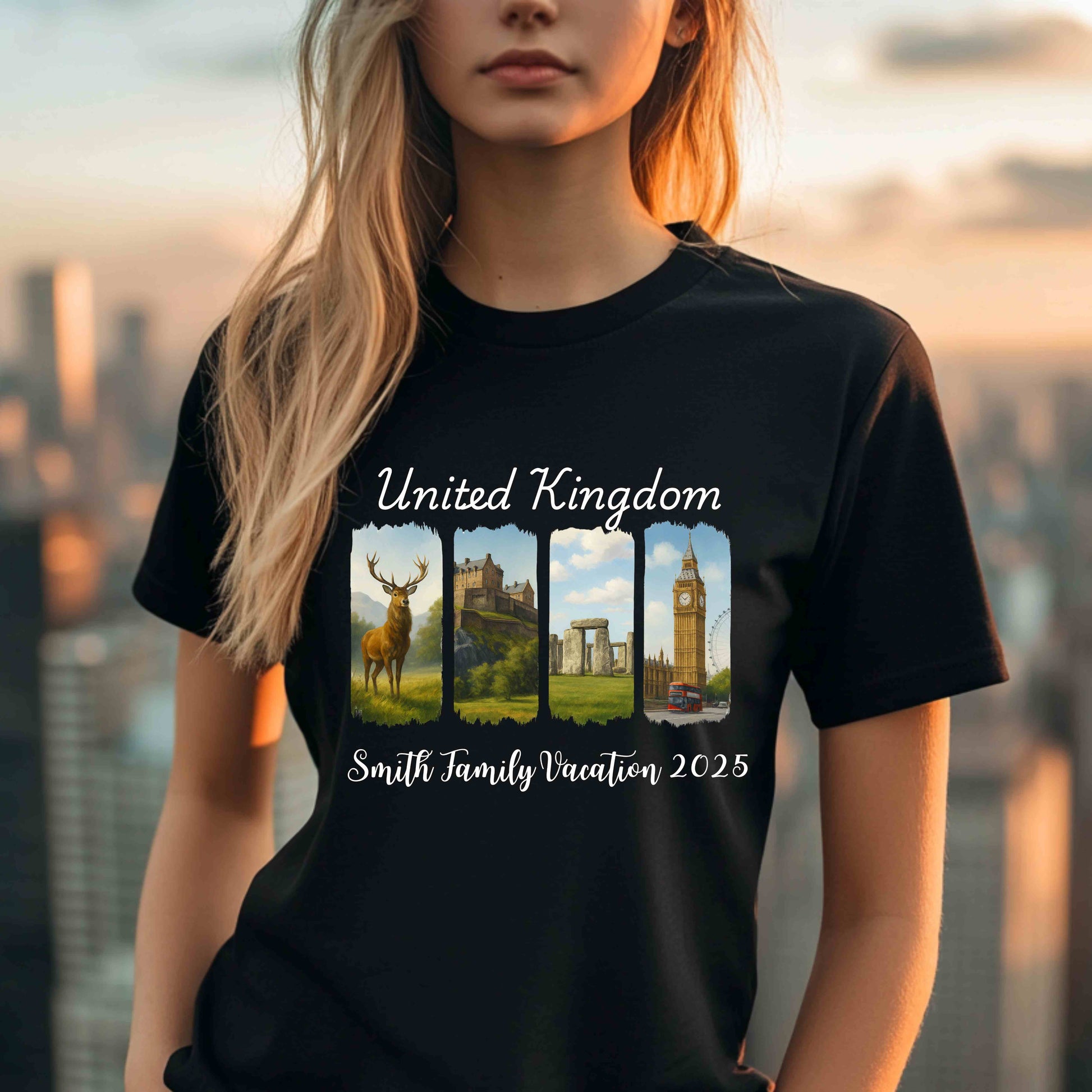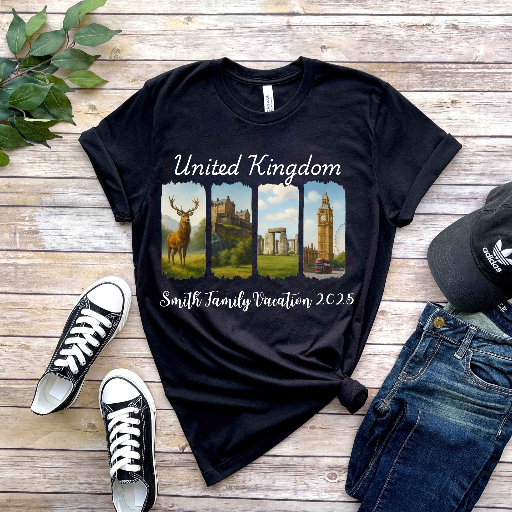 United Kingdom Family Vacation Shirt 2025 – Custom Scenic UK T-Shirt with Landmarks, Personalized Travel Souvenir Tee