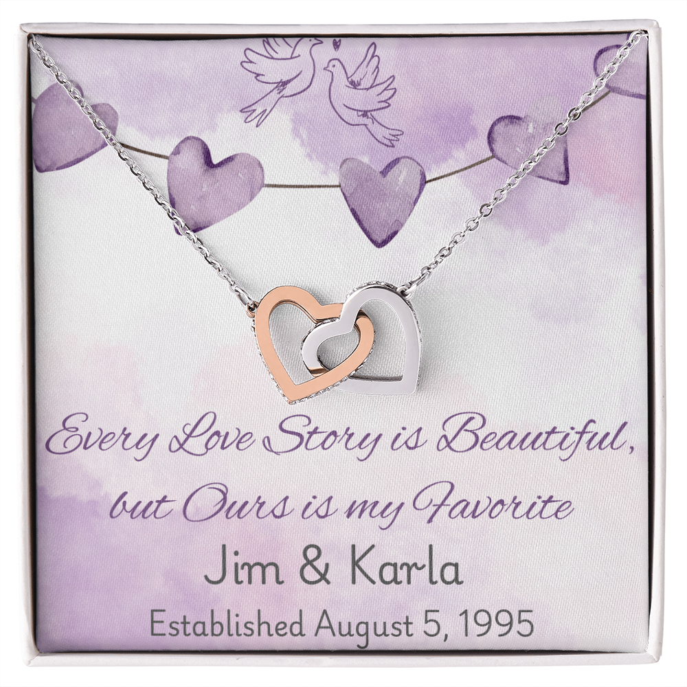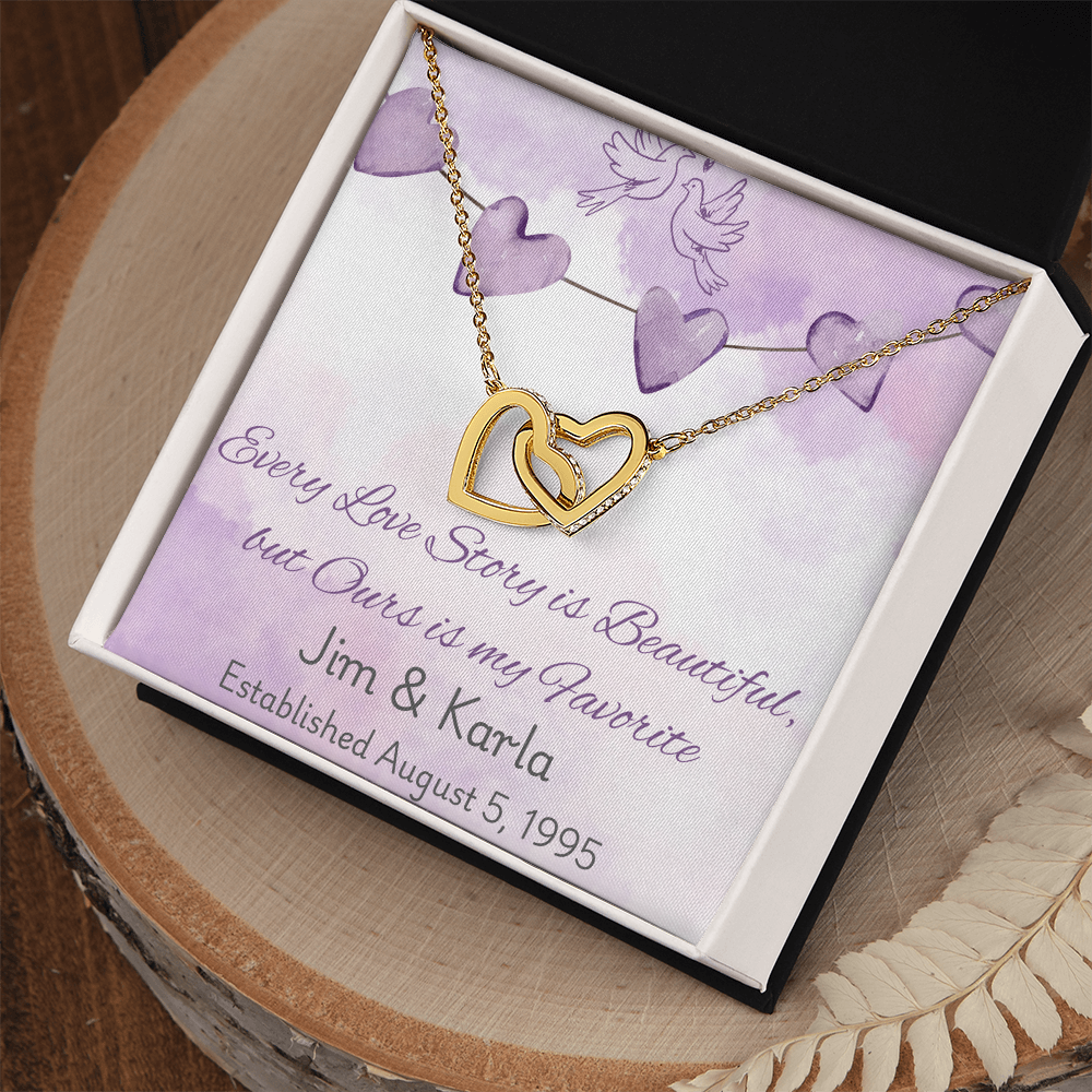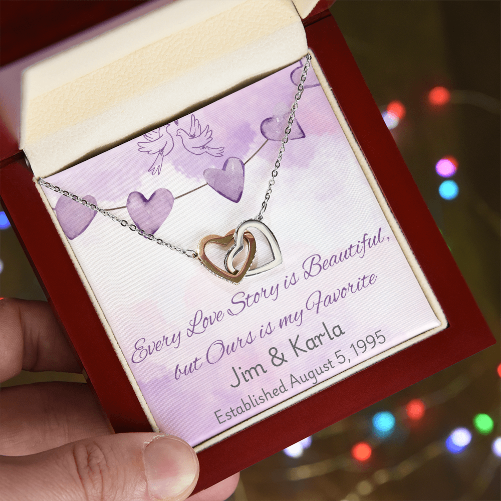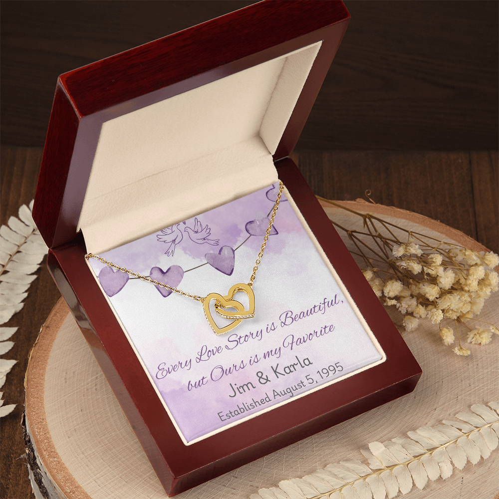 Personalized Interlocking Hearts Necklace – Custom Love Story Gift, Anniversary Jewelry for Wife, Wedding Keepsake with Names & Date